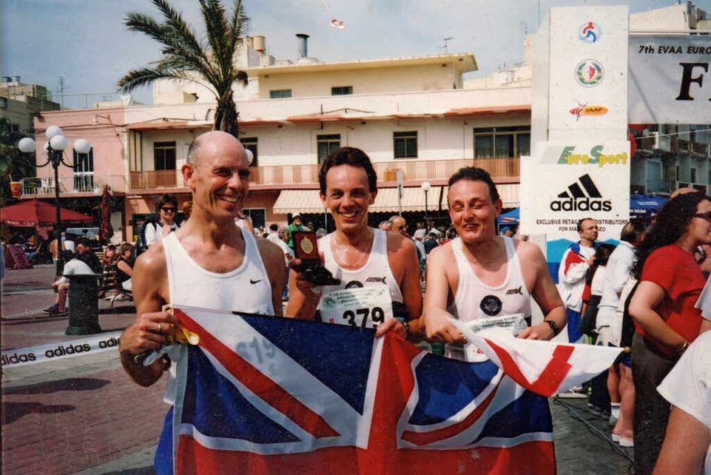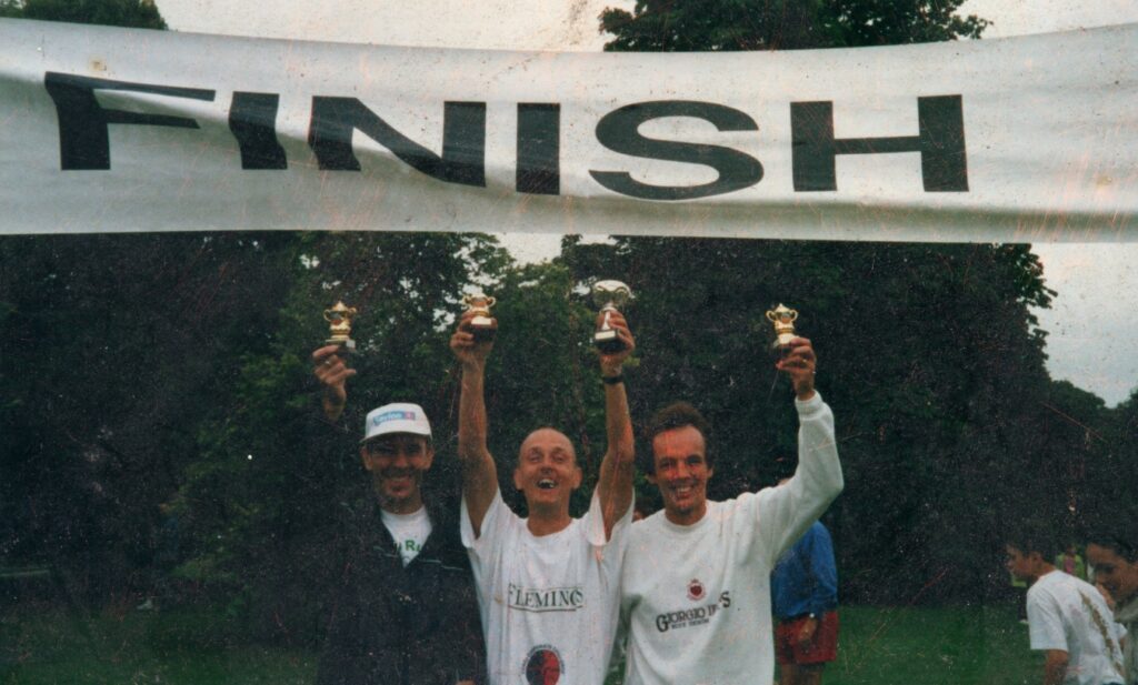 However probably the most serious accolade I ever achieved was SCVAC grand prix winner. 1998 (held over 5miles, 10k, 10 miles, half marathon, marathon). Under severe pressure from the very nimblest of all the Southern old wrinklies brigade I had to finish the Abingdon marathon in a reasonable time in order to secure the series victory. This turned out to be the scene of my famous “blanket” finish with Owen Phipps…not that we came into together as he had pressed on when I started to struggle at 20. It was because he and Joan had found me all of a quiver and a shiver under a blanket after feeling decidedly queasy but still happy enough to clock 2.57 which as it turned out was good enough to secure the spoils and a feature write up in “The Southerner” (SCVAC’s equivalent of Cosmopolitan) which after all is what any old master dreams of isn’t it?