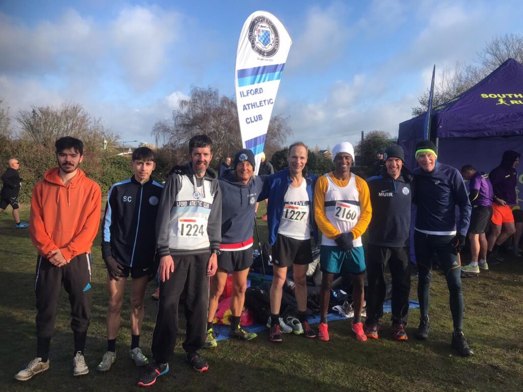 Ilford AC fielded a team of 8 in the 8km men’s event and were led home by recent recruit Shamil Mohamed with an excellent run to finish 13th, and 3rd under 20 athlete, in 26mins 58secs. Next in was another athlete from the under 20 age group Samuel Crane in 29mins 30 mins for 50th spot, and in 58th was club stalwart Malcom Muir with 30mins 07 secs.