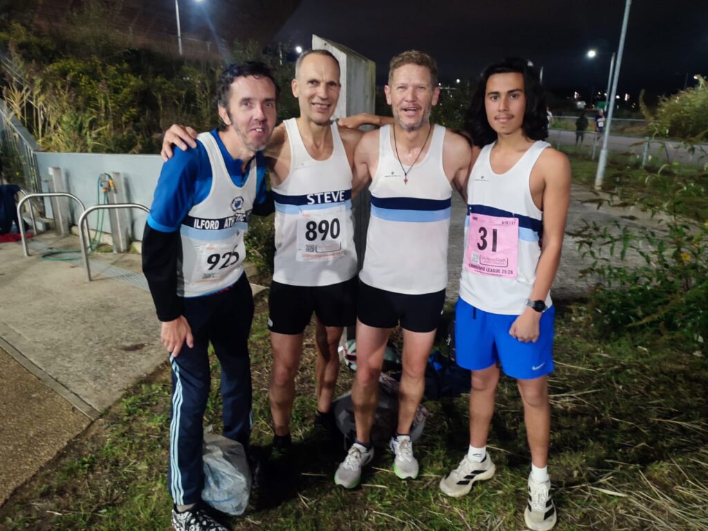 Leading the way for Ilford AC and improving hid best time for the distance was Dyfan Garmon with 17 mins 37secs finishing 33rd in the division 1 match. Next over the line was Richrd Morris in 57th with 18mins 31 secs and Diarmuid Mac Donnell recorded 20 mins 02 secs in 97th. The Ilford team was completed by a trio finishing three places of each other; Steve Chissell 128 21.08 Tarik Qirem 130 21. 27 and Bradley Brown 131 21.28.