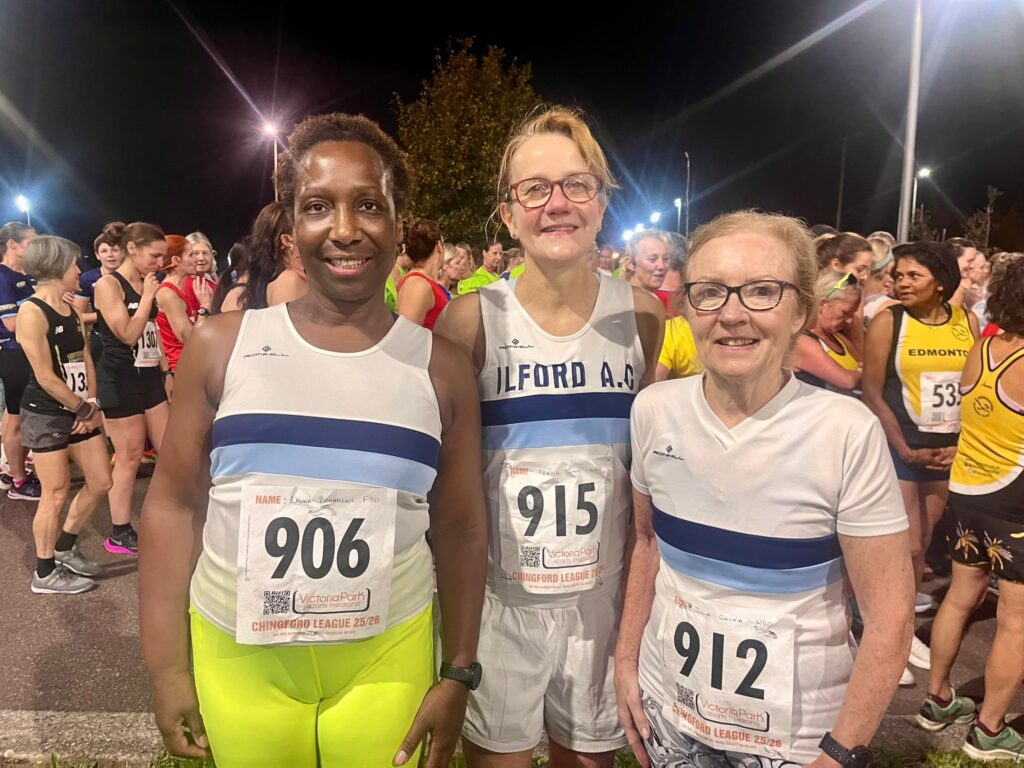 The Ilford Ladies are in division 2 of the league this season and raced with a depleted team led by Natalie Crisp in 13th in their match with 24 minutes exactly and supported by Pauline Tester with 25.53 for 41st, Launa Broadley in 61st with 30 mins 09 secs, Frieda Keane recording 31mins 18 secs in 65th and Julia Galea rounding out the team in 68th with 32mins 20 secs