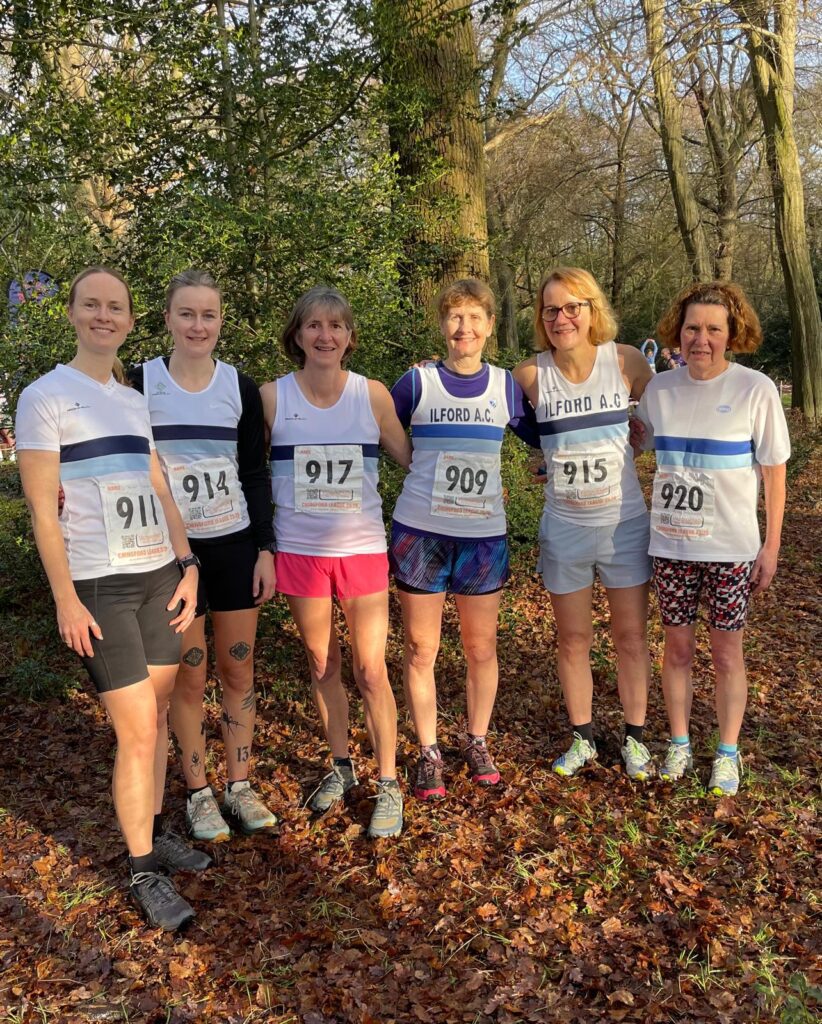 The Ilford Ladies are in division 2 and first home was Natalie Crisp showing good form in 13th place in 48mins 58 secs while Alison Sale also had a good run for 16th in 50mins 39 secs and was the first home in the F60 category. Next in was Jenni Sheehan with 55mins 14 secs for 24th and Pauline Tester finished 26th in 56mins 08 secs. Completing the team were Dianne Crisp 33rd in 59.40 and Frieda Keane 39th in 65.14