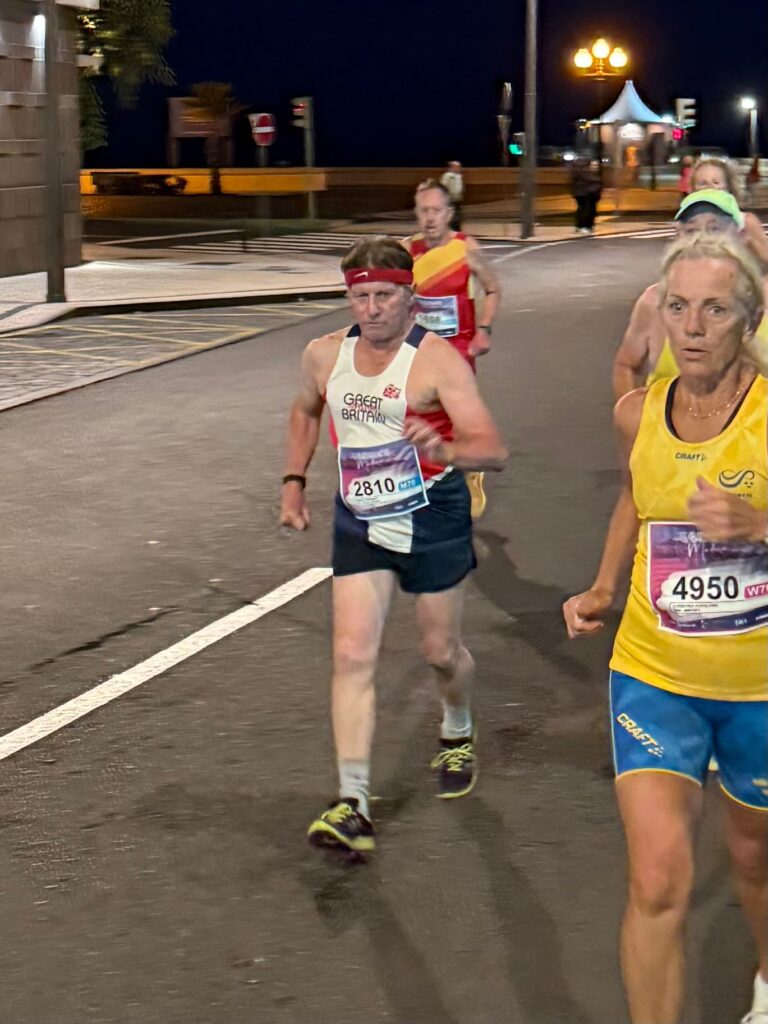 The 10km road race at the European Masters Athletics Championship in Funchal, Madeira was a night race with an 8pm start time. It is a humid evening over a challenging course over 2 5km laps featuring a 1km climb and some cobbled streets. Ilford AC had two athletes in the event, both in the M70 category. Andy Catton was placed 215th overall and 15th in the age group in 51 mins 20 secs, while Rob Sargent found the conditions tough going coming home in 74 mins 16 secs for 256th in the race and 31st in the age group. Neither athlete scored for the Great Britain team