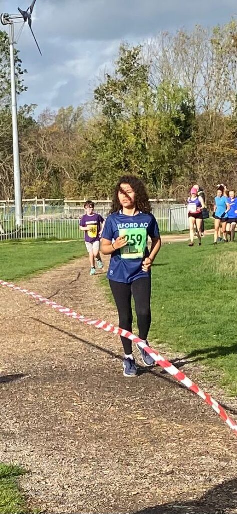 Newcomer Flavia Busciglio running in only her third race produced a really good performance of 11.57m to finish in 16th position. Next Ilford athlete was Phoebe Rice who worked really hard in only her second race closing the team in 17th place recording 12.25m