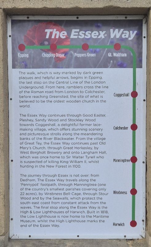 The Essex Way relay is held on the first Sunday in September every year and covers 82 miles of ancient trails, footpaths, and countryside across Essex starting from Epping Station at 8am and finishing after 6pm at the Harwich Old Lighthouse in a 10 stage relay.